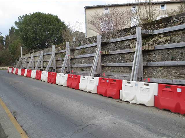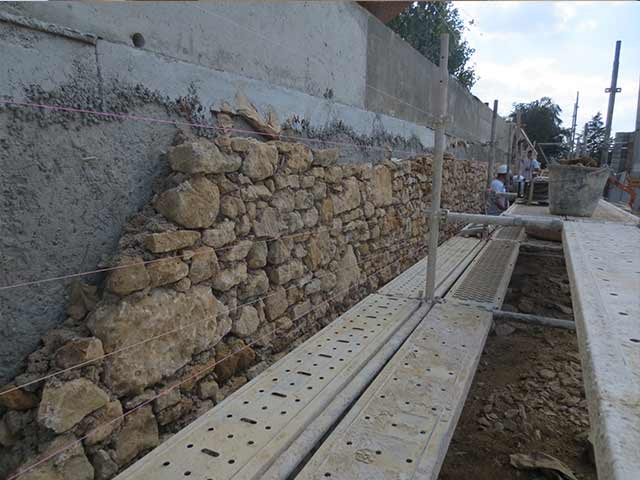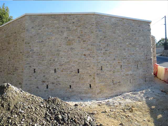 Mur de soutènement – paroi berlinoise et habillage en pierre calcaire – NOUAILLE MAUPERTUIS (86)
