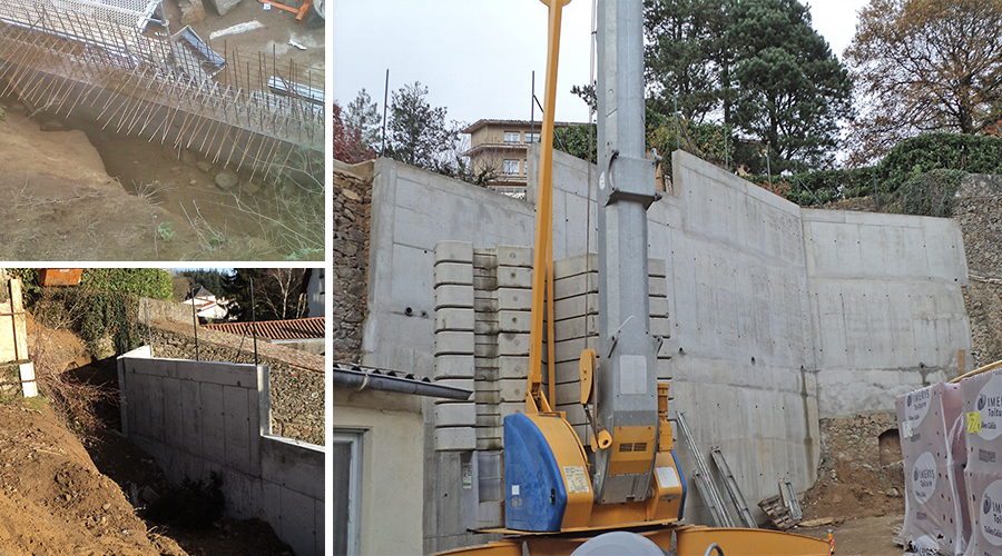 Confortement d’ouvrage hydraulique par pieux châtaigniers et gabions.